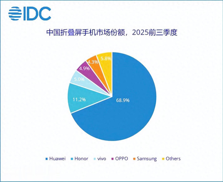 说白了,市场刚刚交出一份很清晰的成绩单:截至 2025 年前三季度,华为在中国折叠屏手机市场拿下 68.9% 的份额——这是绝对的统治级数据,不是虚报。