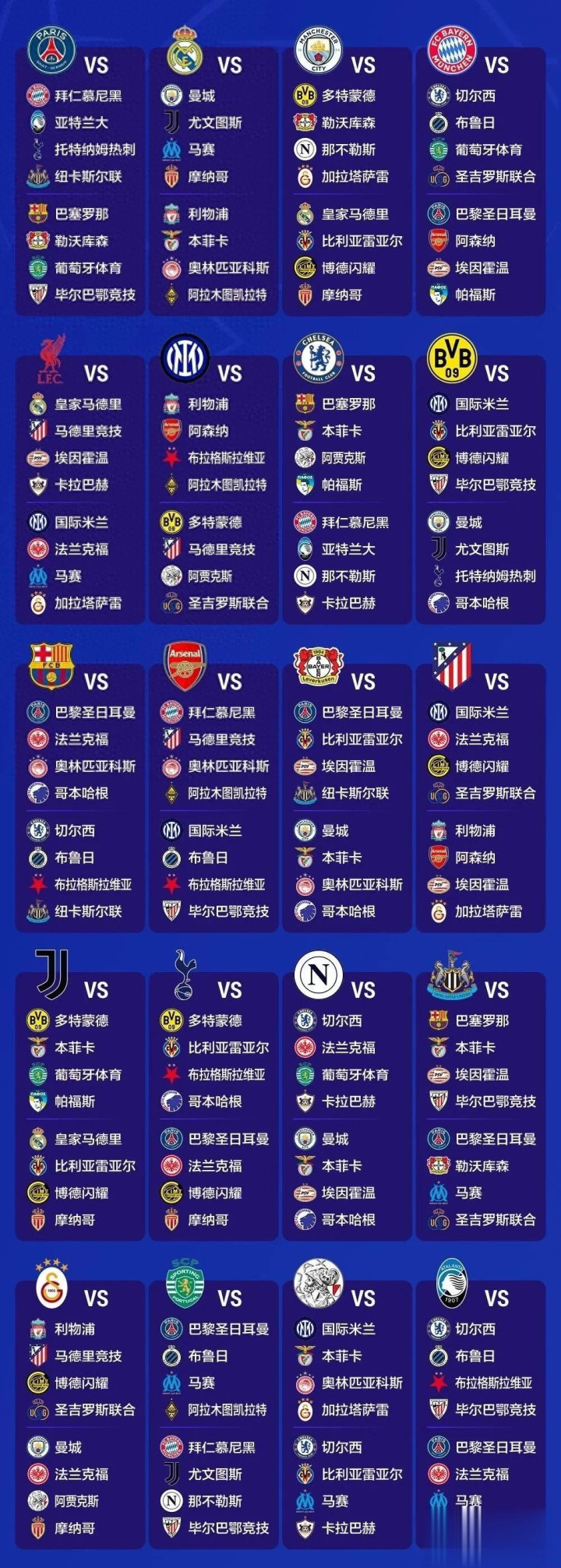 再看拜仁。拜仁的签运也不好,对手有大巴黎,阿森纳,切尔西。又是世俱杯冠亚军来伺候。另外,勒沃库森的签运也不妙,他们将面对大巴黎和曼城。